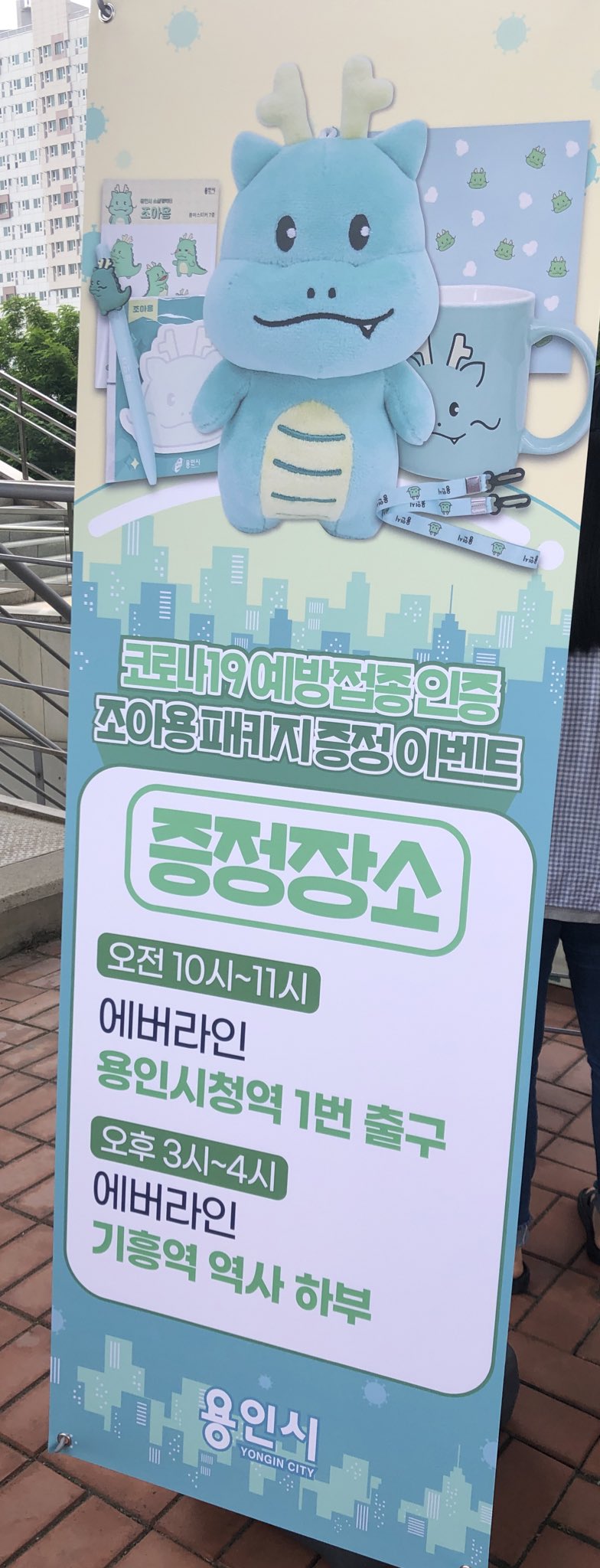 선착순으로 전에 홍차넷에도 소개된 조아용 굿즈를 나눠준다고 합니다. 부럽당. https://twitter.com/7criss/status/1407948338725482497 코로나19 예방접종 인증하고 조아용 패키지 받아가세요! https://story.kakao.com/ch/yongincity/GYmkgnSyEw0 대리수령도 된다고 하고, 400명 선착순이라니, 끝났겠죠?? 1