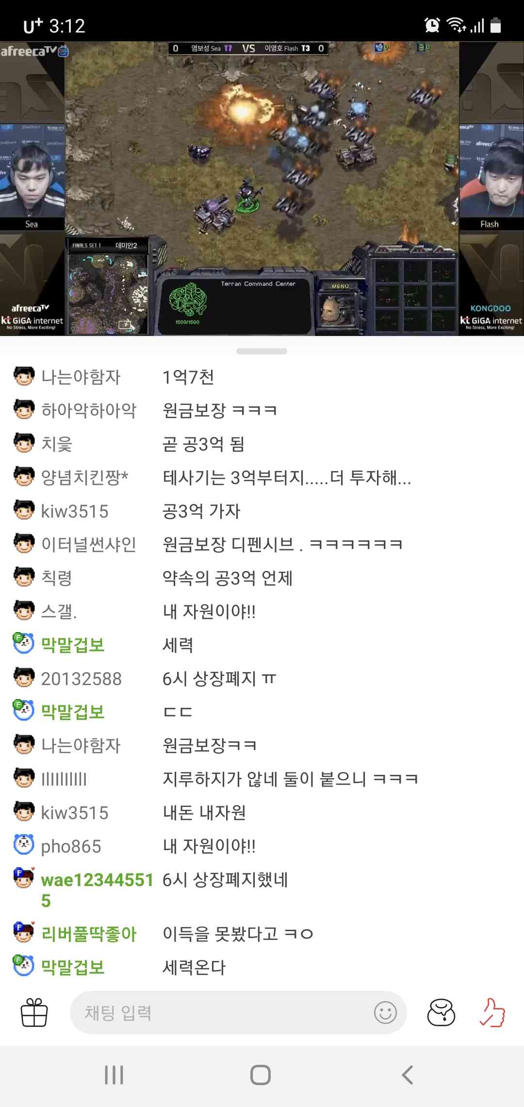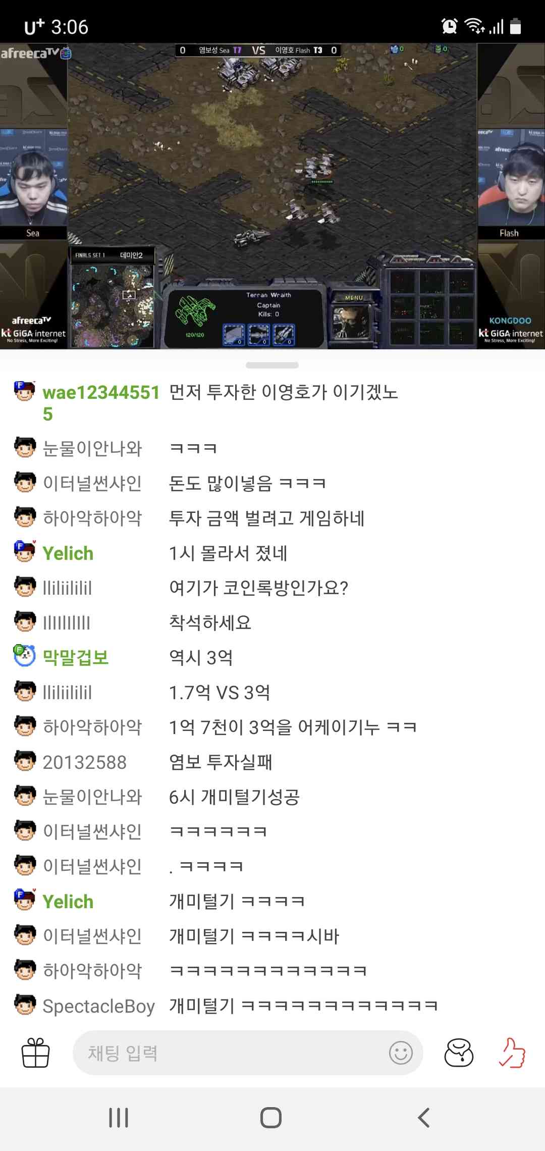 | Subject | 이영호vs 염보성 게임 채팅창 |