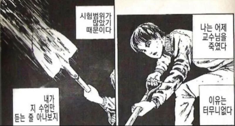 | Subject | 난 어제 교수님을 죽였다. |