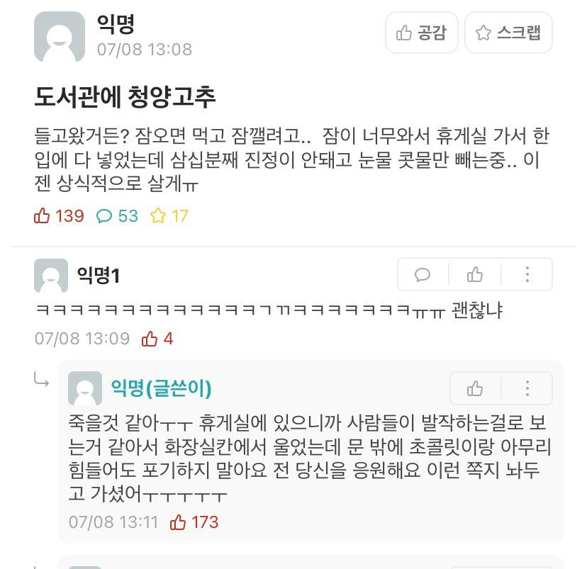 잠깰려고 청양고추 먹었거등? 인류애를 느꼈오~ 1