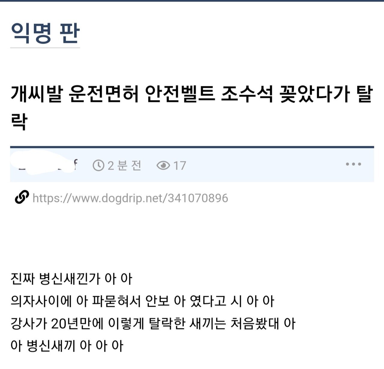 - 유머가 아닌 펌글, 영상 등 가볍게 볼 수 있는 글들도 게시가 가능합니다.
