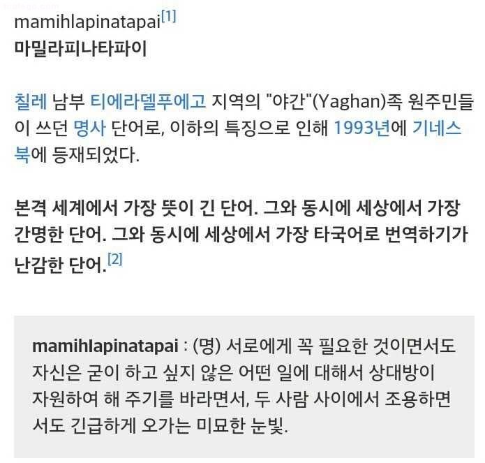 | Subject | 타국어로 번역하기 난감한 단어 - 마밀라피나타파이 |