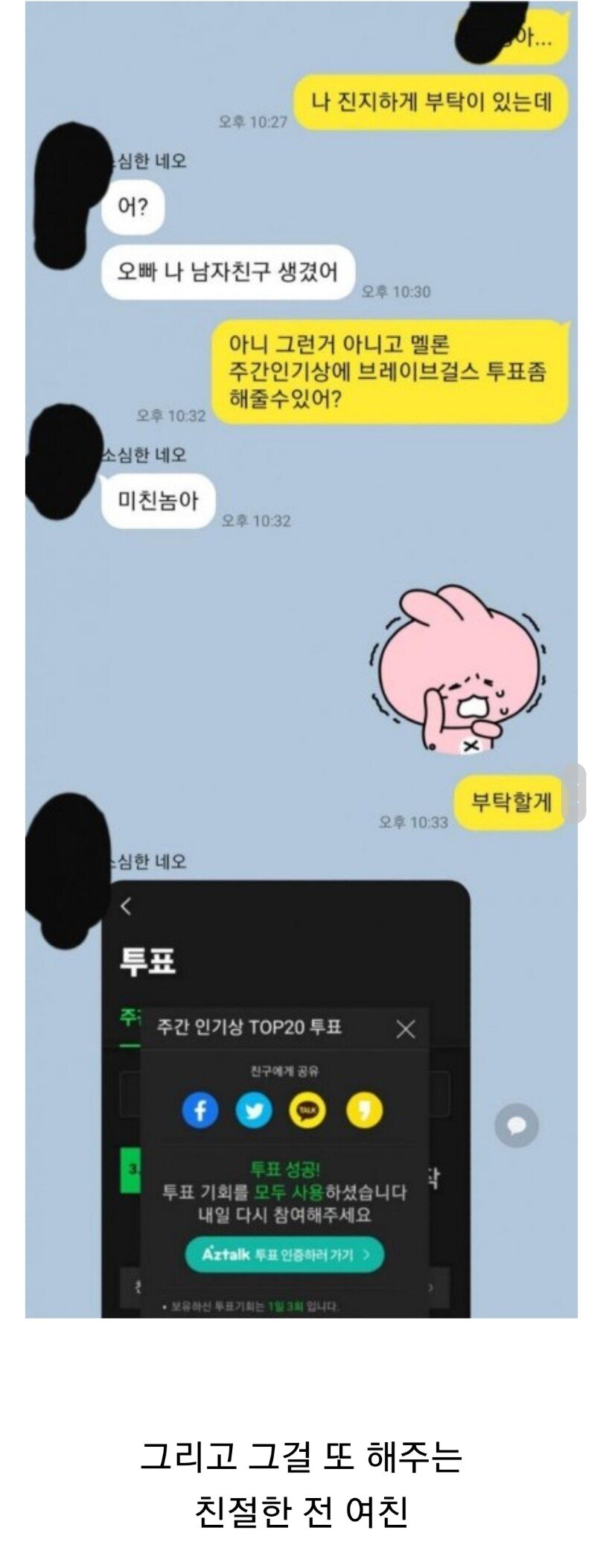 | Subject | 헤어진 전 여친에게 진지하게 부탁하는 전 남친 |