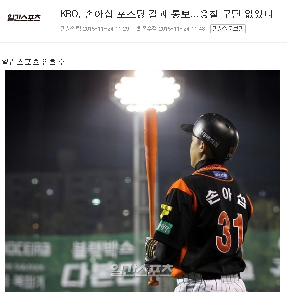 | Subject | 손아섭 선수 포스팅 결과 이후 댓글 |