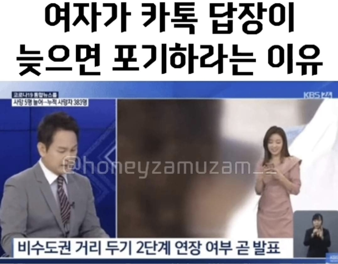 | Subject | 여자들이 카톡 답장이 늦으면 포기하라는 이유 |