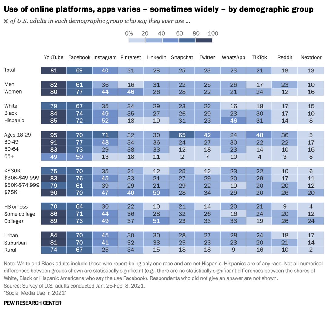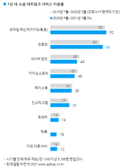 https://www.yna.co.kr/view/AKR20210909071000017 주 사용자 층이 직장인이고, 주로 월도하는 용도라서?? :) 참고로 미국의 경우입니다만, https://www.pewresearch.org/internet/2021/04/07/social-media-use-in-2021/ 0