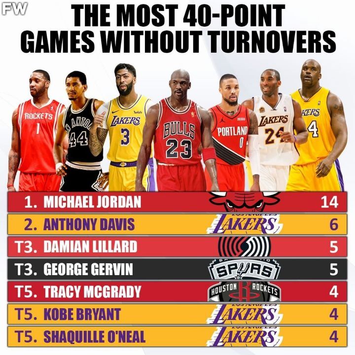 NBA 40+득점 및 0턴오버 경기 Top 7
