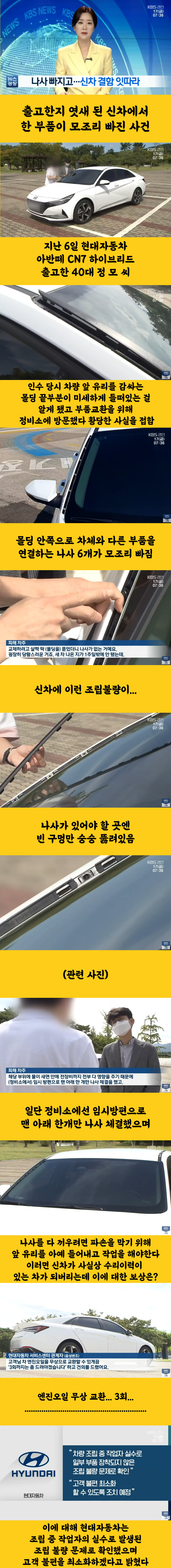 | Subject | 출고한지 엿새 된 신차에서 한 부품이 모조리 빠진 사건.jpg |