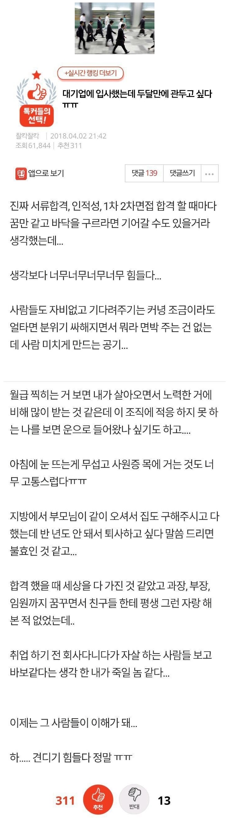 | Subject | 대기업 입사했는데 두달만에 관두고 싶다.jpg |