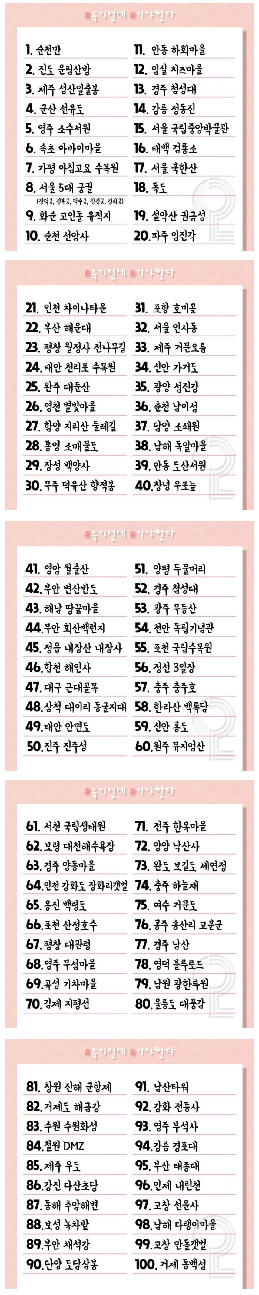 | Subject | 죽기전에 꼭 가봐야할 국내여행지 100 |