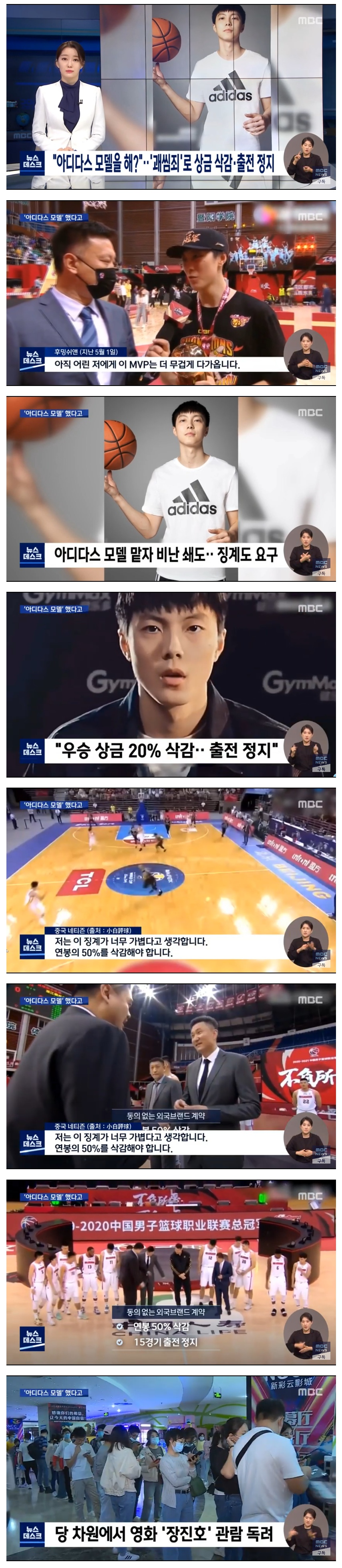 아디다스 모델을해 중국 국가대표 농구선수 괘씸죄로 징계 0