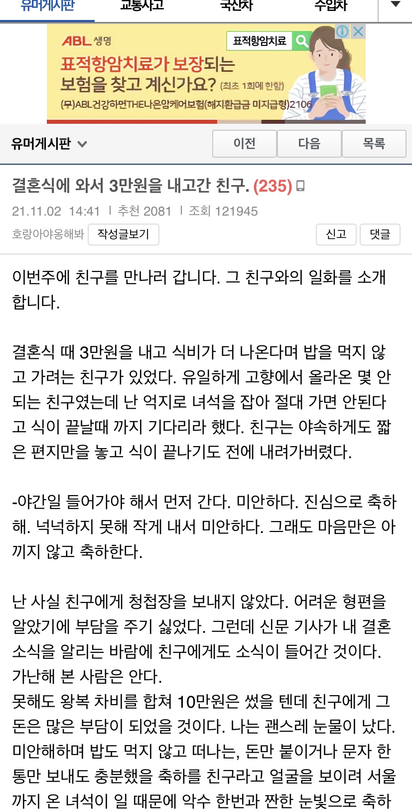 54728 결혼식에 와서 3만원을 내고간 친구 12 swear 21/11/03 5272 1