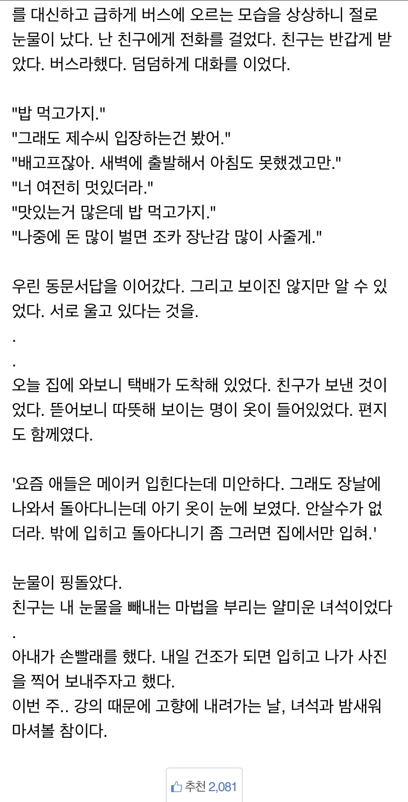 멋진 친구네요. 가슴이 뭉클해지는..ㅜㅜ