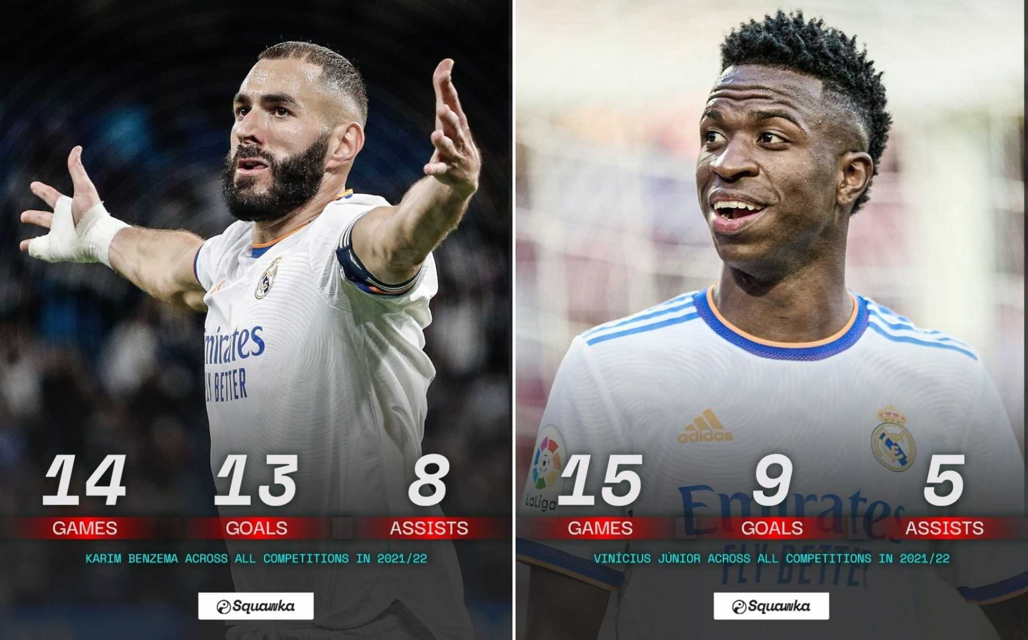 ![]() ![]() ![]() ![]() 패스 주지 말라고 꼽주던게 몇년 전 일도 아니고 당장 지난 시즌 일인데... 한 시즌만에 이런 구도가 될 줄 누가 알았을까요. 이번 경기에서는 비니시우스가 벤제마에게 2 어시스트를 제공했지만, 평소 경기에서는 벤제마 역시 비니시우스에게 많은 키패스를 제공하는 정말 상호보완적인 모습을 보여주고 있습니다. 이번 시즌 지금까지는 이 둘이 최고라고 해도 될 것 같군요. ![]() 카림 벤제마는 챔피언스리그 75골을 달성. 카림 벤제마는 지난 11경기의 챔피언스리그 홈 경기에서 11골을 득점 중. 이 11경기 중 득점에 실패한 경기는 단 1번, 지난 시즌의 리버풀전 뿐이었다고 하네요. 카세미루는 이번 경기 출장으로 레알 마드리드 통산 300경기에 출장했으며 이로써 레알 마드리드에서 300경기를 돌파한 3번째 브라질 선수가 되었다고 합니다. 이전 2명은 카를루스(527경기)와 마르셀루(532경기 진행 중). ![]() 레알 마드리드는 유러피언컵을 포함해 챔피언스리그 통산 1000호골을 넣은 첫 번째 클럽이 되었다고 하네요. 0