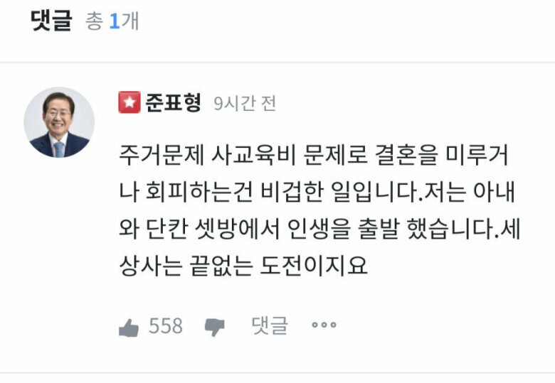 | Subject | 홍준표님 결혼·출산율에 대한 견해가 궁금합니다 |