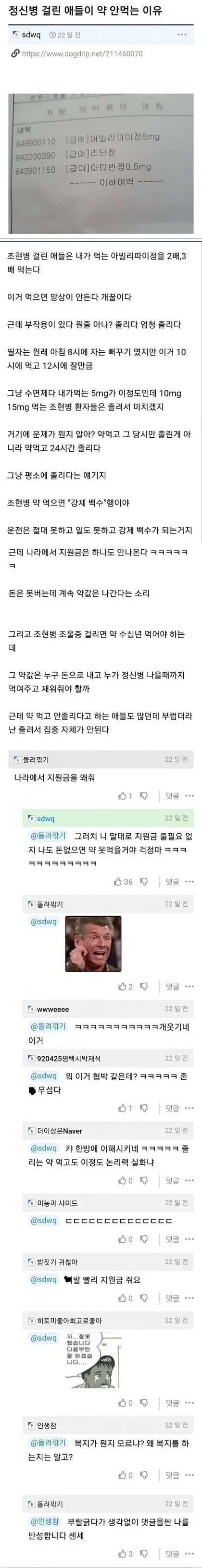 | Subject | 조현병 걸린 사람들이 약을 잘 안먹는 이유.eu |