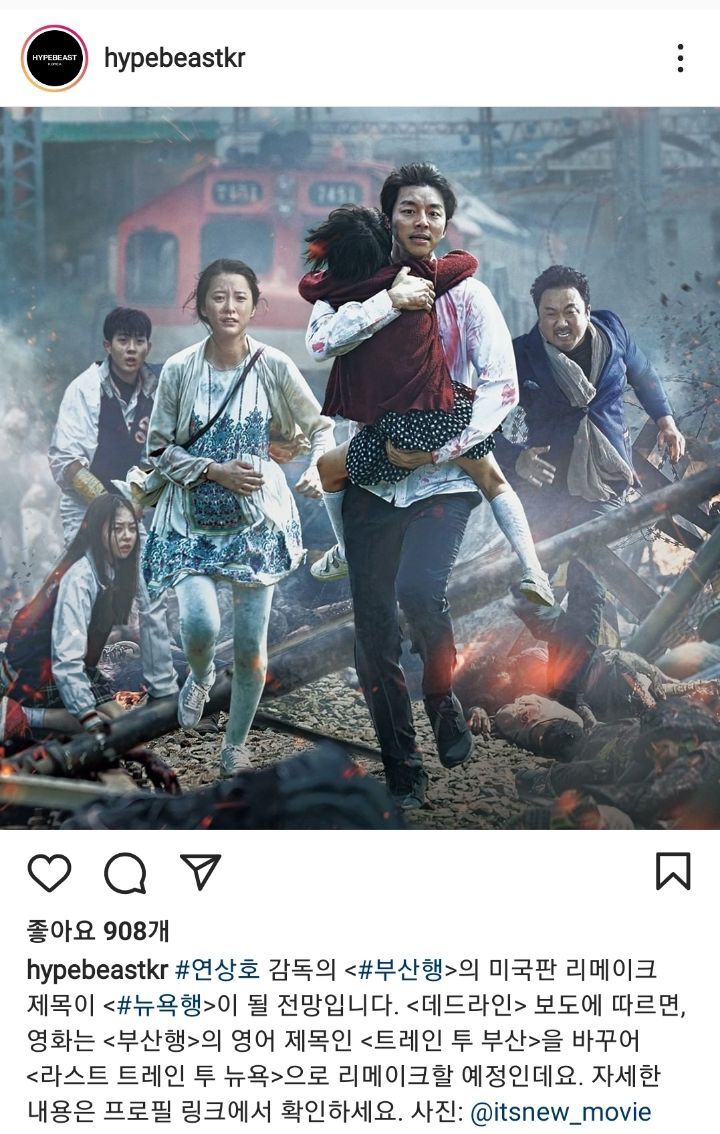 | Subject | 부산행 미국판 리메이크 뉴욕행. |