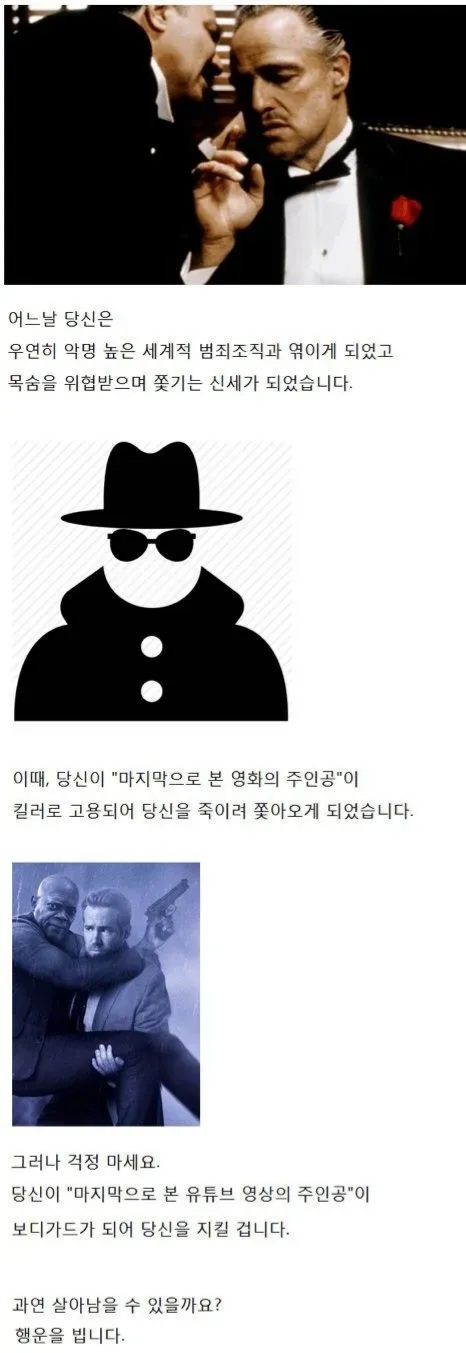 Subject   당신은 목숨을 위협받으며 쫓기는 신세가 되었습니다