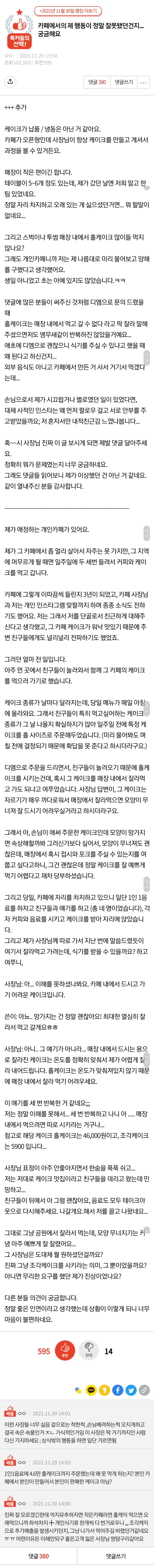 | Subject | [pann] 카페에서의 제 행동이 잘못됐던건지…궁금해요 |