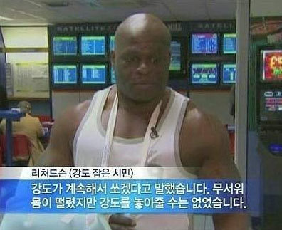 시민들이 무섭지만 비명을 듣고 강도를 쫒아가 무섭지만 다라이버로 차량을 무력화시키고 무섭지만 차에서 끌어내려 무섭지만 상처 입으면서까지 제압해 경찰에게 인계. 1
