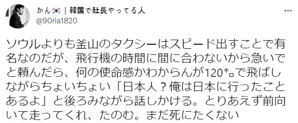 | Subject | 부산 택시를 타본 일본인의 소감. |
