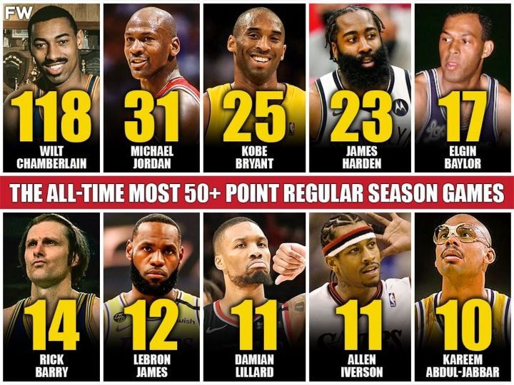 | Subject | NBA 통산 정규시즌 50+득점 경기 Top 10 |