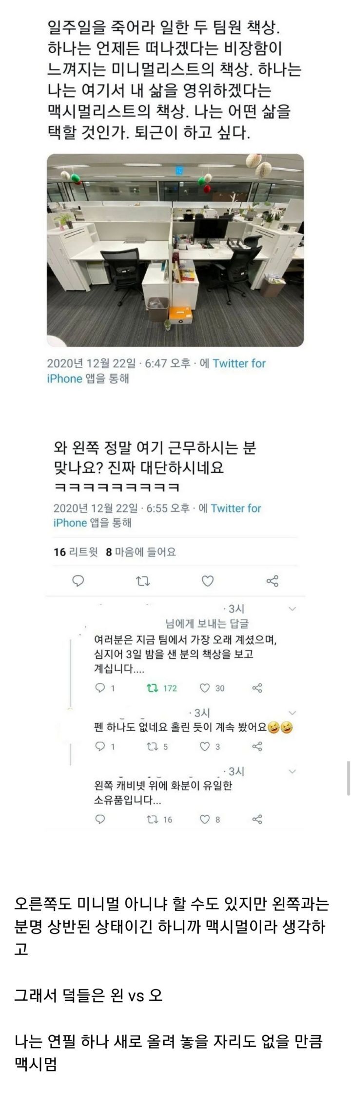 55723 회사에서 3일을 꼬박 일한 두 직원의 책상 12 다람쥐 22/01/05 4291 0