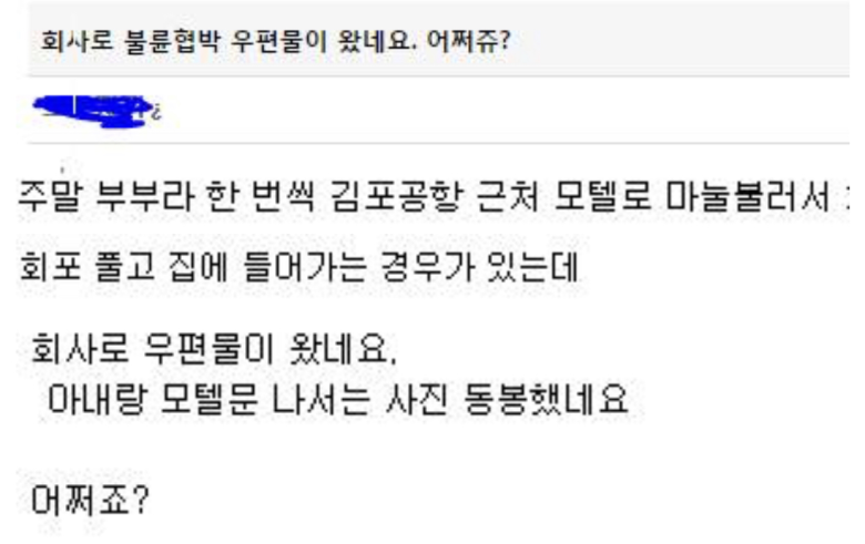 Subject   회사에 불륜 협박 우편물이 왔네요. 어쩌죠...?