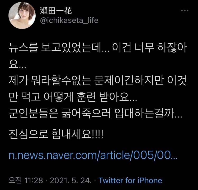 | Subject | 한국군인 부실배식을 본 어느 일본인의 트윗 |