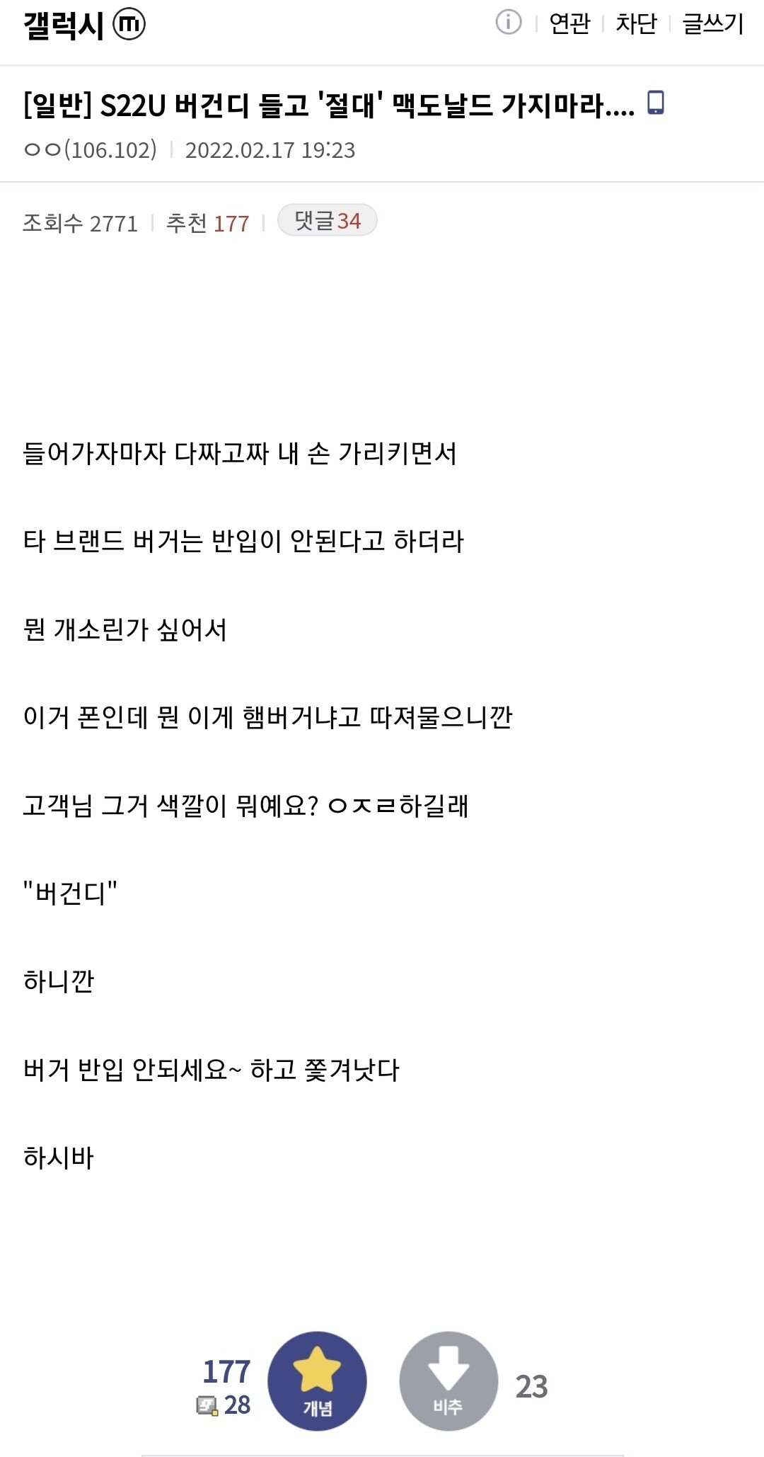 | Subject | 갤럭시 S22U 버건디 들고 '절대' 맥도날드 가지마라...... |