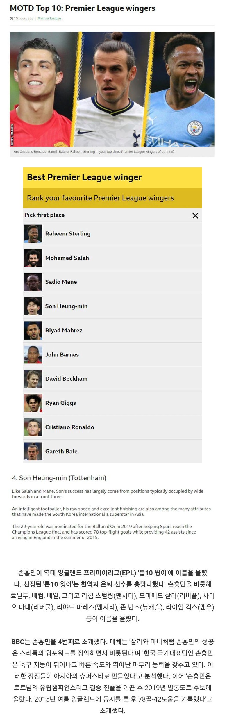 | Subject | BBC) 손흥민 EPL 윙어 올타임 TOP 10 선정.jpg |