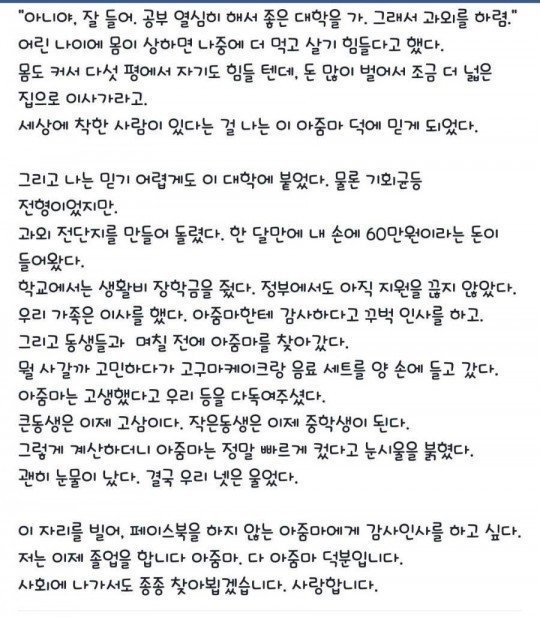 | Subject | 아이의 알바비를 대신 관리한 집주인 아주머니… |