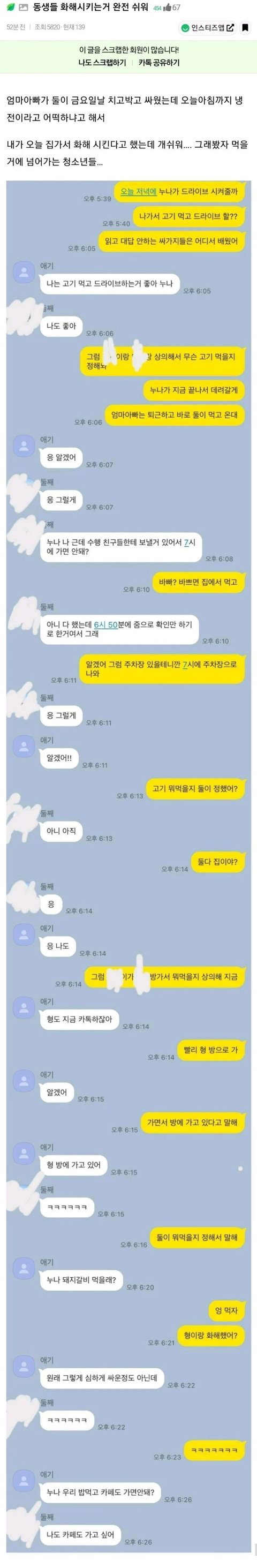 동생들 화해시키는거 완전 쉬워 0