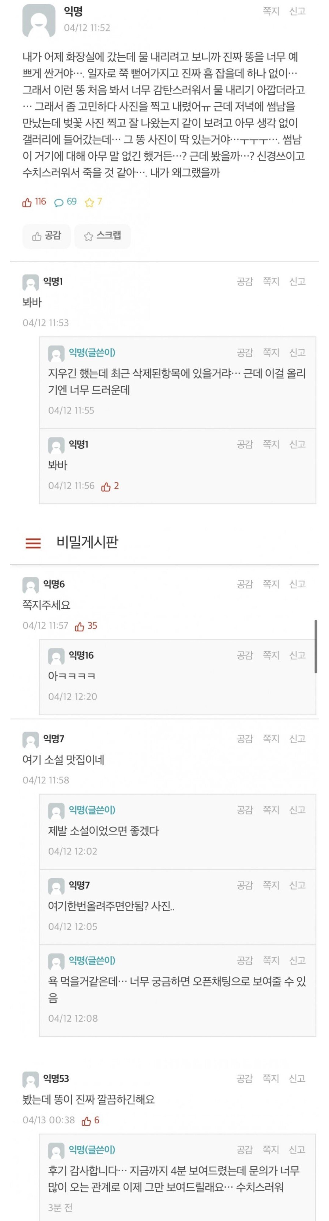 아니 그걸 찍긴 왜 찍고 다른 사람들은 왜 또 그걸 궁금해해 ㅋㅋㅋㅋ 0