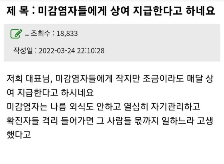 | Subject | 코로나 안 걸린 사람한테 상여금 주는 회사.jpg |