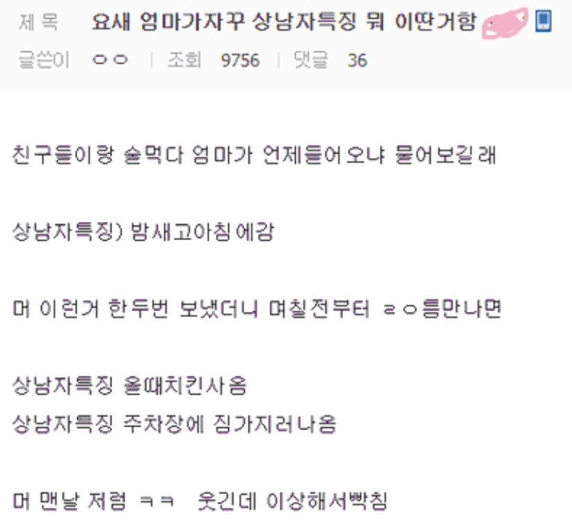 | Subject | 엄마가 말해주는 상남자 특징 ㅋㅋㅋ |