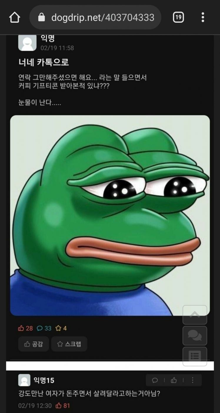 | Subject | 커피 기프티콘을 받았는데 눈물이 난다 |