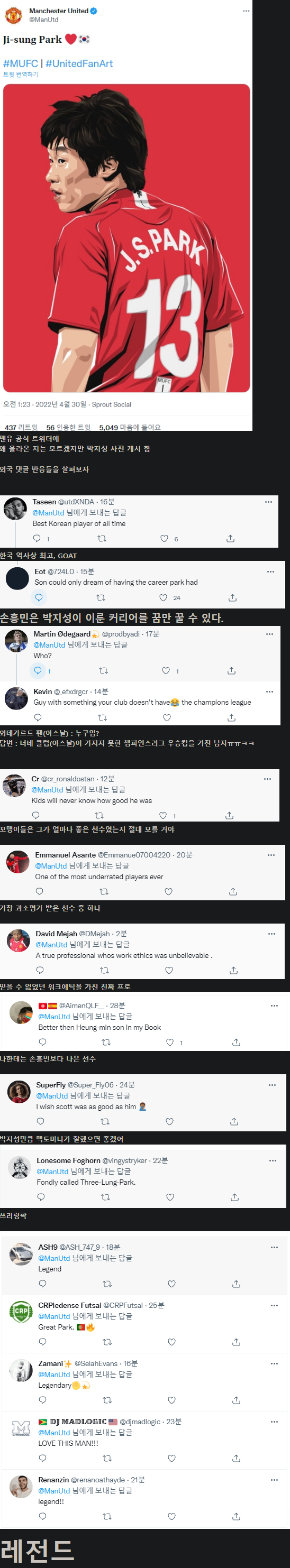 | Subject | 맨유 트위터에 올라온 박지성, 외국 팬들 댓글 반응.jpg |