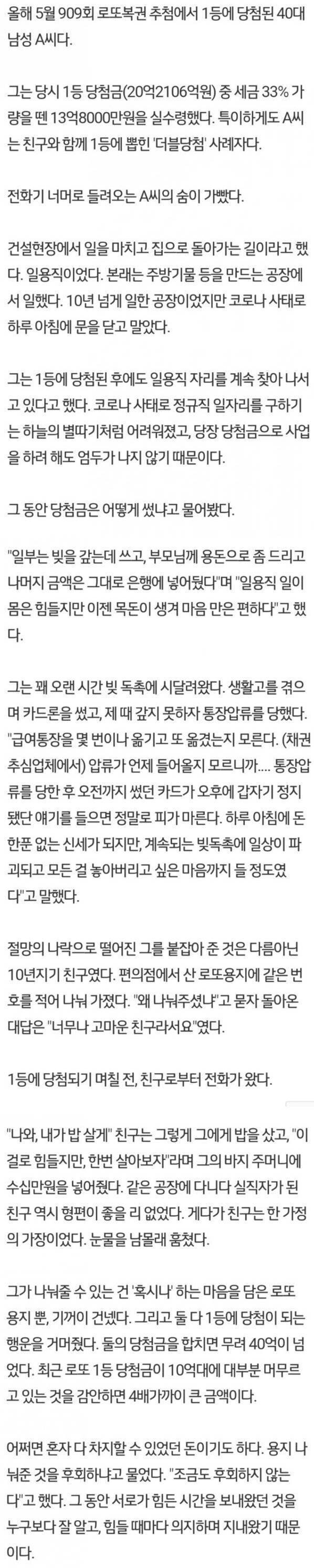 | Subject | 친구와 함께 로또 1등 당첨되신 분 |