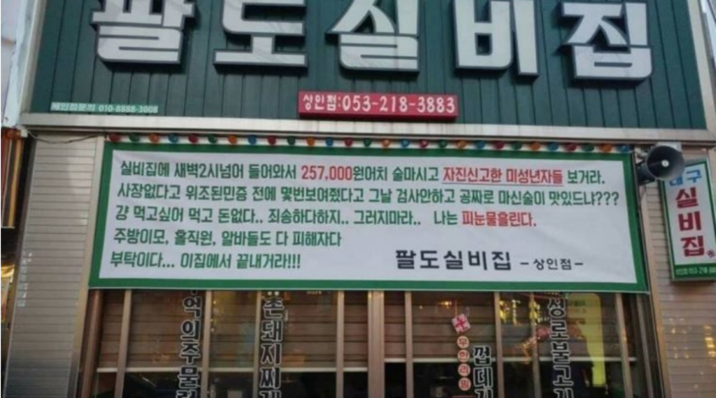 | Subject | 폐업을 결정한 식당 - 청소년보호법. |