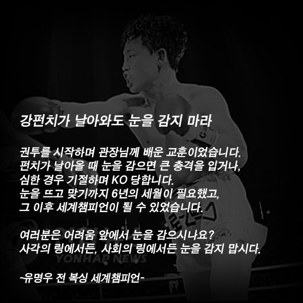 | Subject | 강펀치가 날아와도 눈을 감지 마라 |