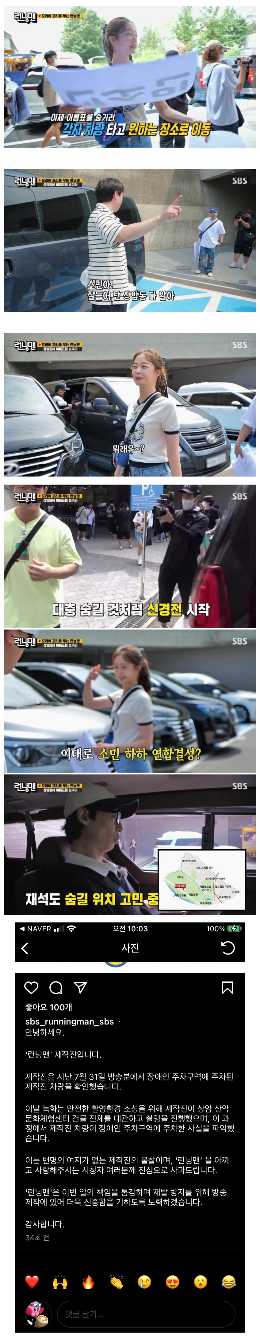 런닝맨 제작진 불법주차 사과문..jpg 0