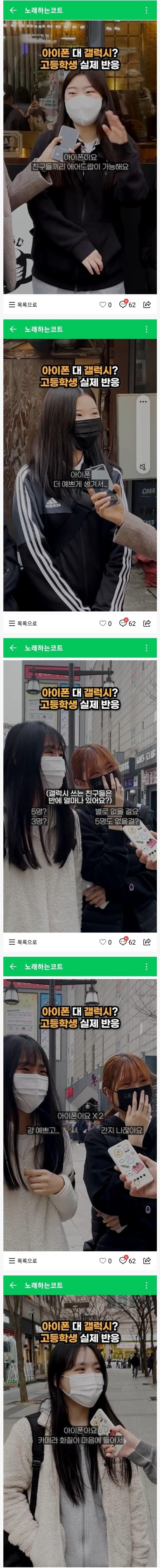 아이폰 vs 갤럭시 현역 여고딩 실제 반응 0