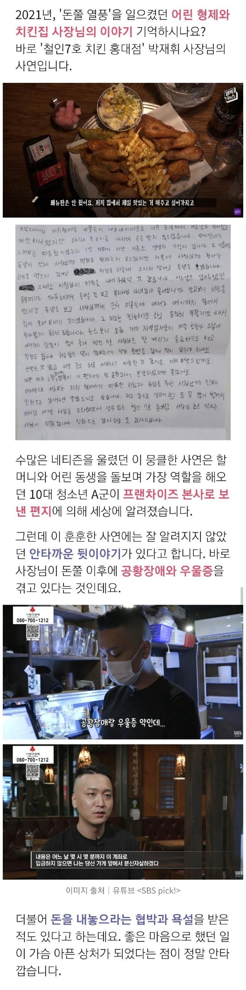 | Subject | 아이들한테 공짜로 치킨 주고 돈쭐당하던 치킨집 사장님 비하인드 |