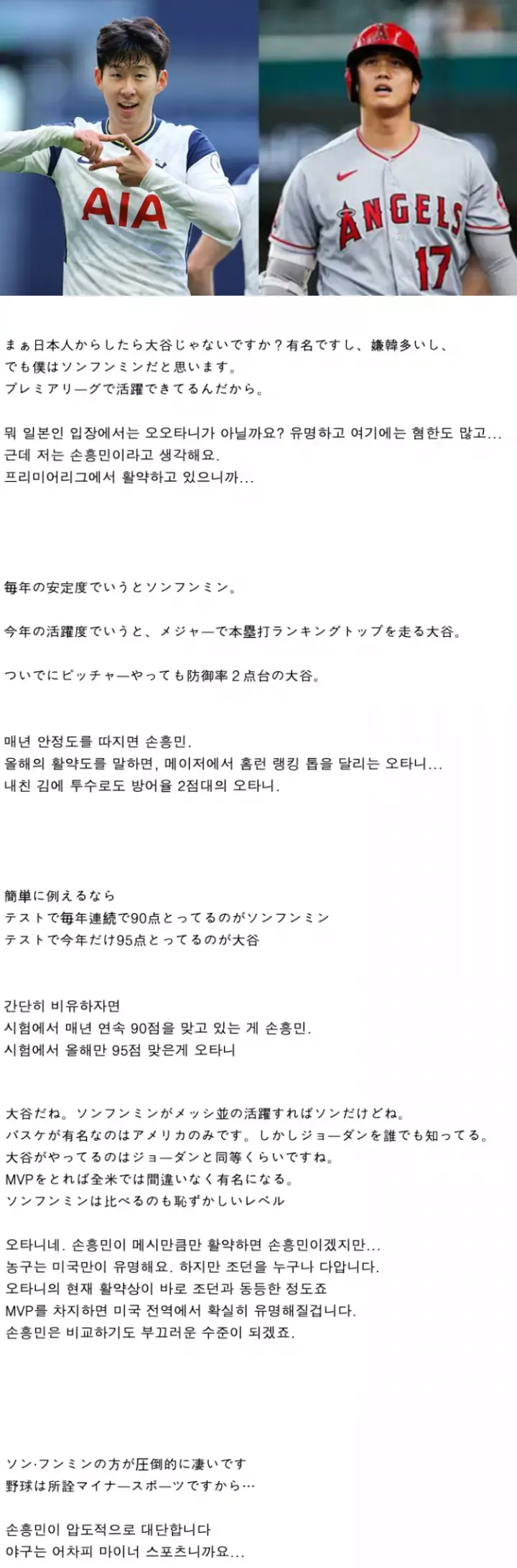 | Subject | 손흥민vs오타니 누가 더 대단한가 일본반응.JPG |