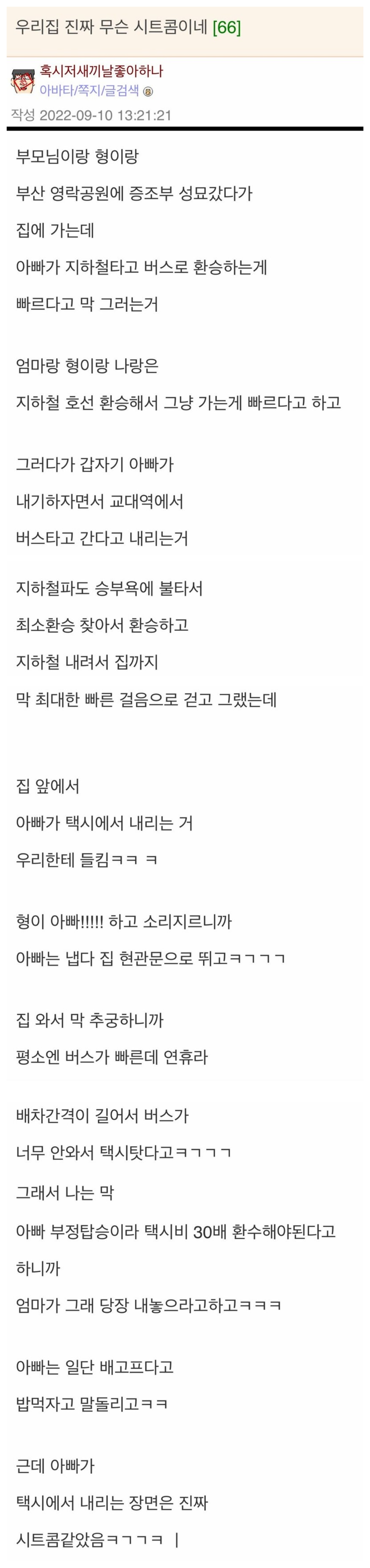 아니 아버님 아무리 이기고 싶으셔도 택시를 타시면 ㅋㅋㅋㅋ