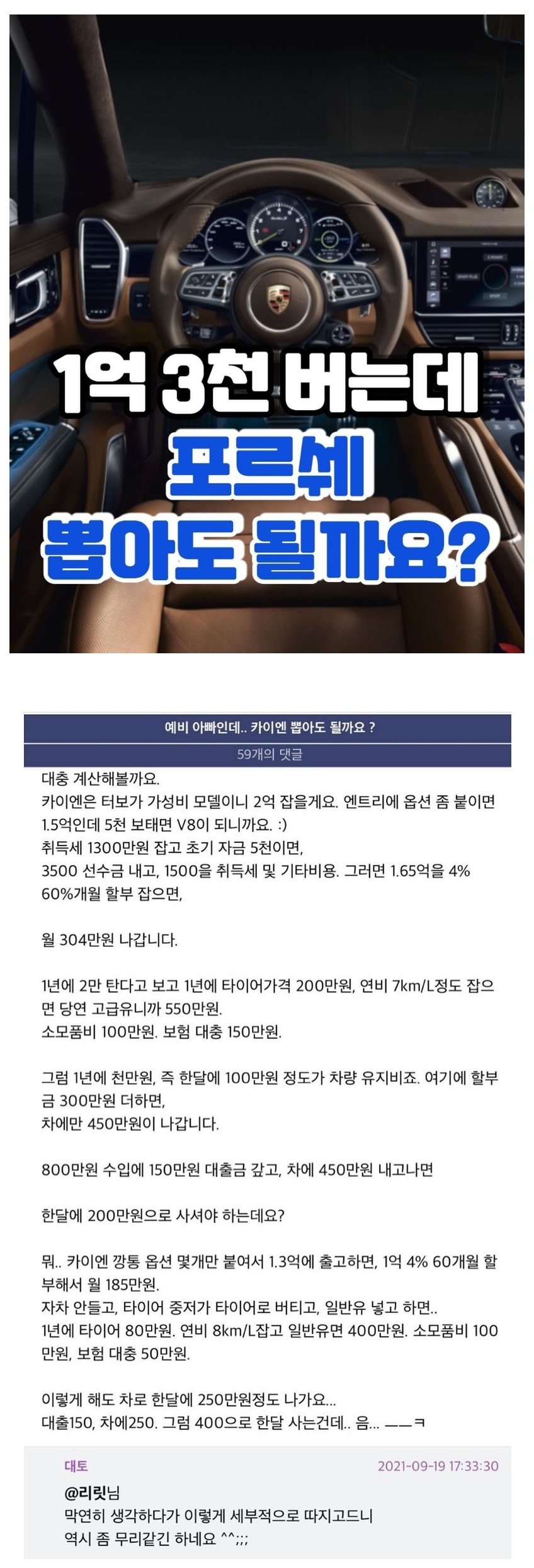 1억 3천 버는 예비아빠인데 포르쉐 뽑아도 될까요?