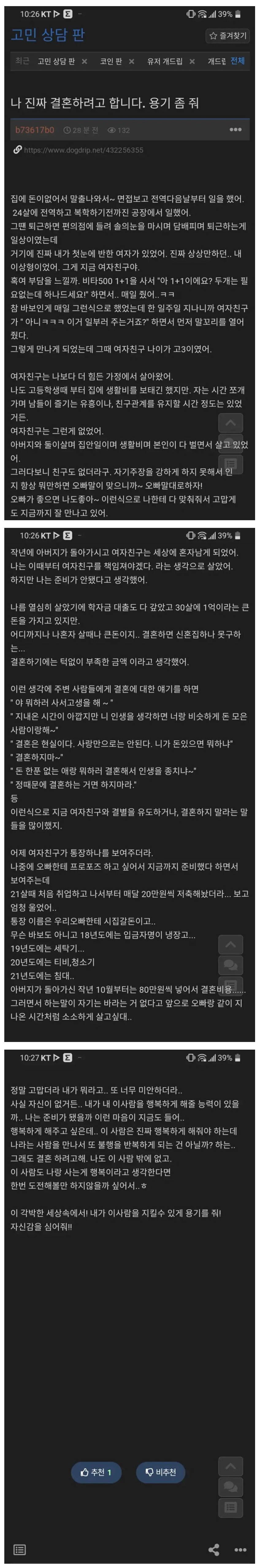 나 진짜 결혼하려고 합니다. 용기 좀 줘 0