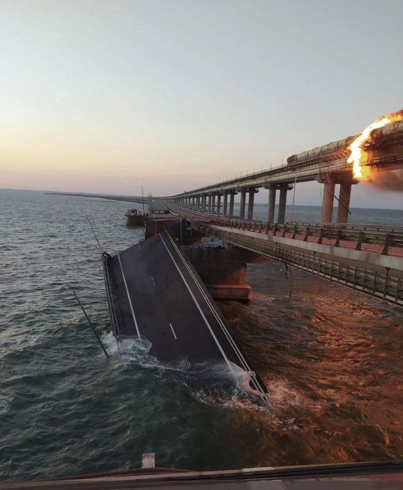 Mash shows several videos and pictures of the fire on the Kerch Bridge, connecting occupied #Crimea and mainland #Russia.