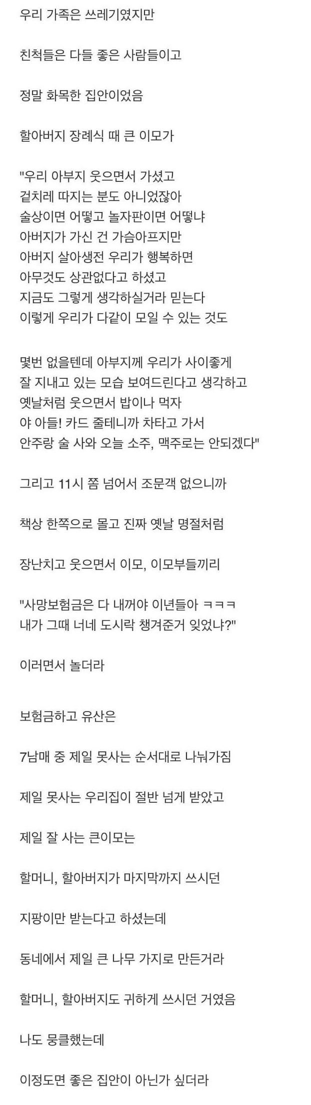 집안 어르신 돌아가셨을때 보이는 집안 수준 4